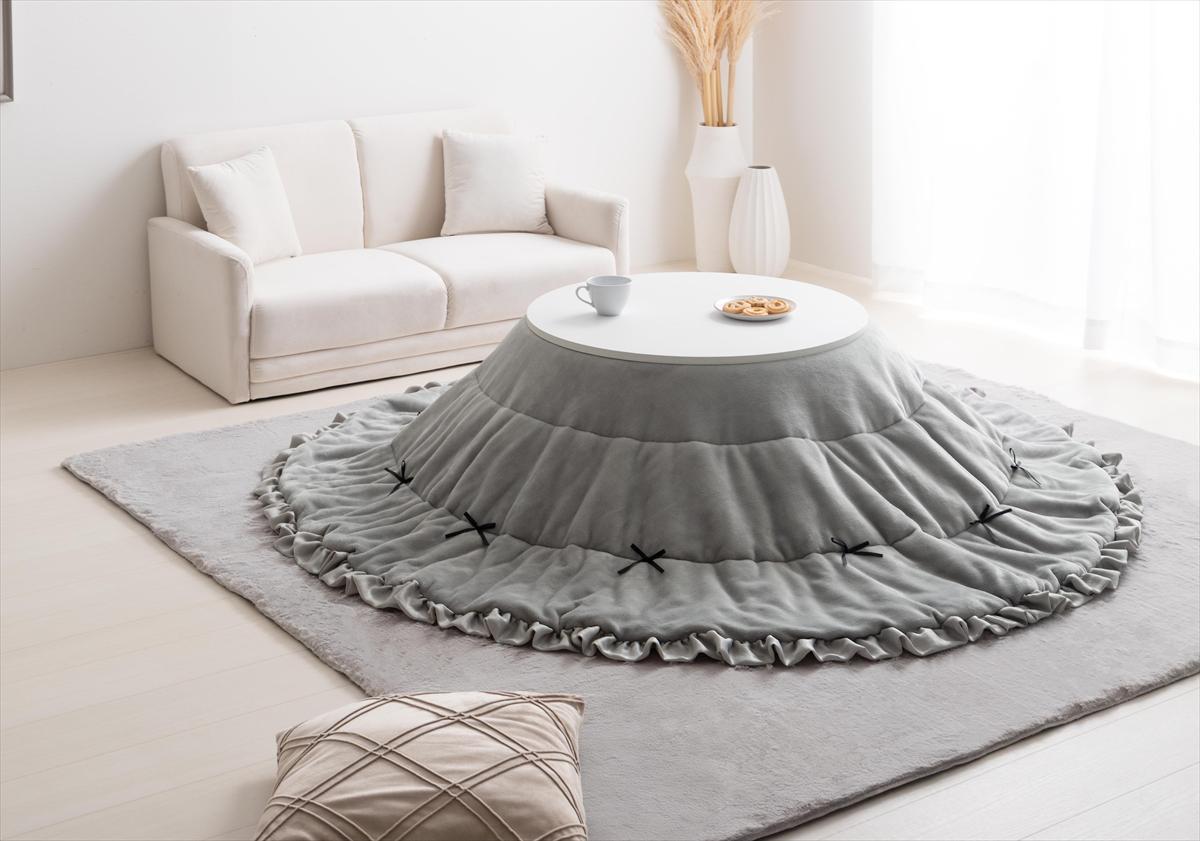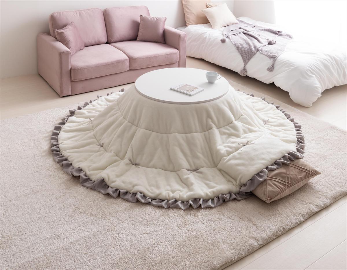 さりげないリボンと、やわらかなフリルにときめくこたつ掛け布団