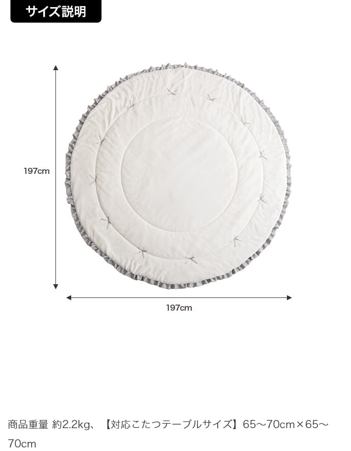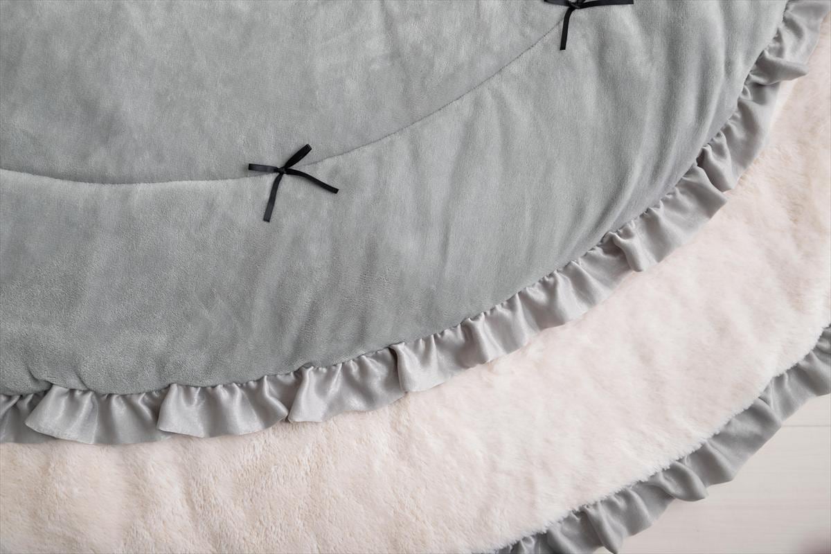 【円形:197cm】リボン&フリル付きリバーシブルファーこたつ布団