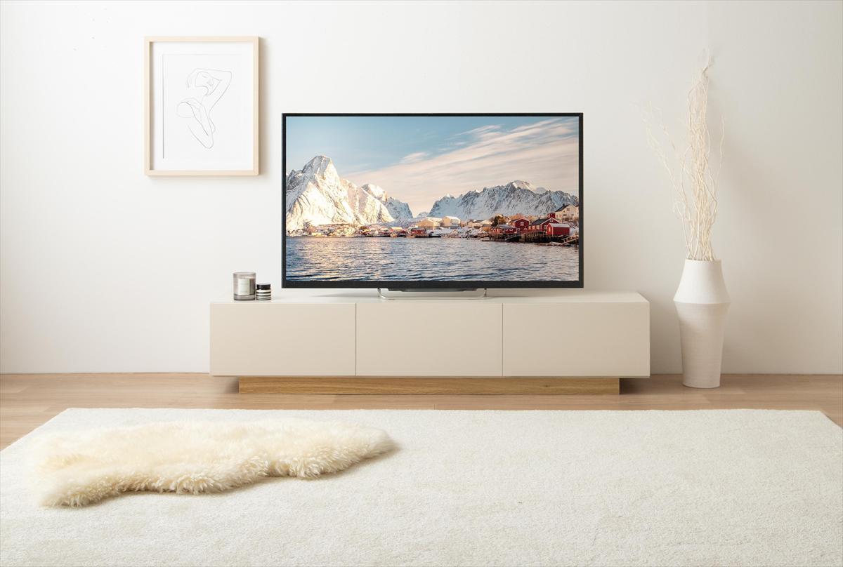 バイカラーの配色が特徴的な引き出し付きテレビ台