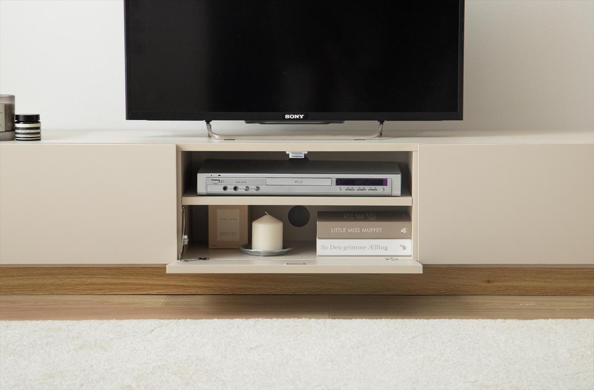 テレビ台の下部分にはDVDプレイヤーやゲーム機などを収納するのに便利。配線が整理しやすい設計で、すっきりとした印象を保つことができます。