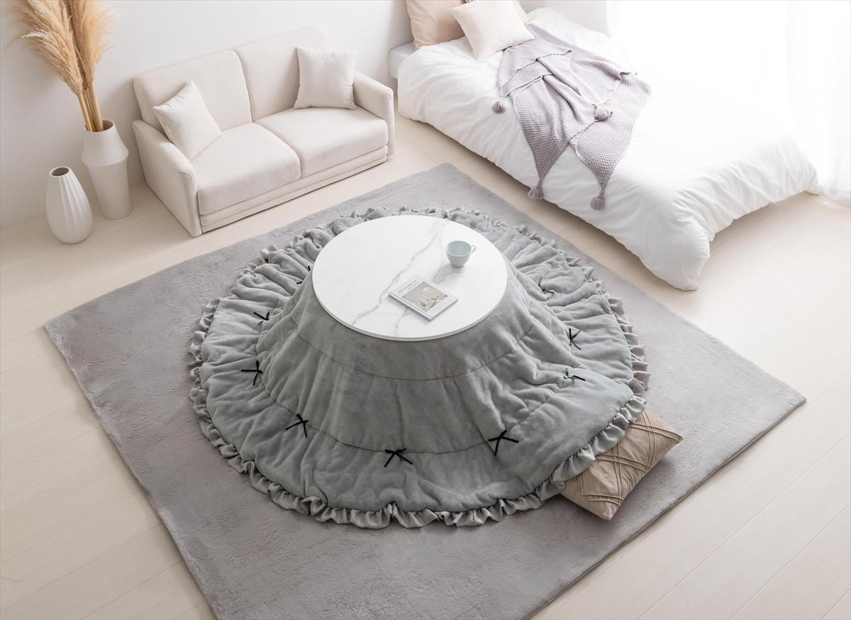 さりげないリボンと、やわらかなフリルにときめくこたつ&掛け布団セット