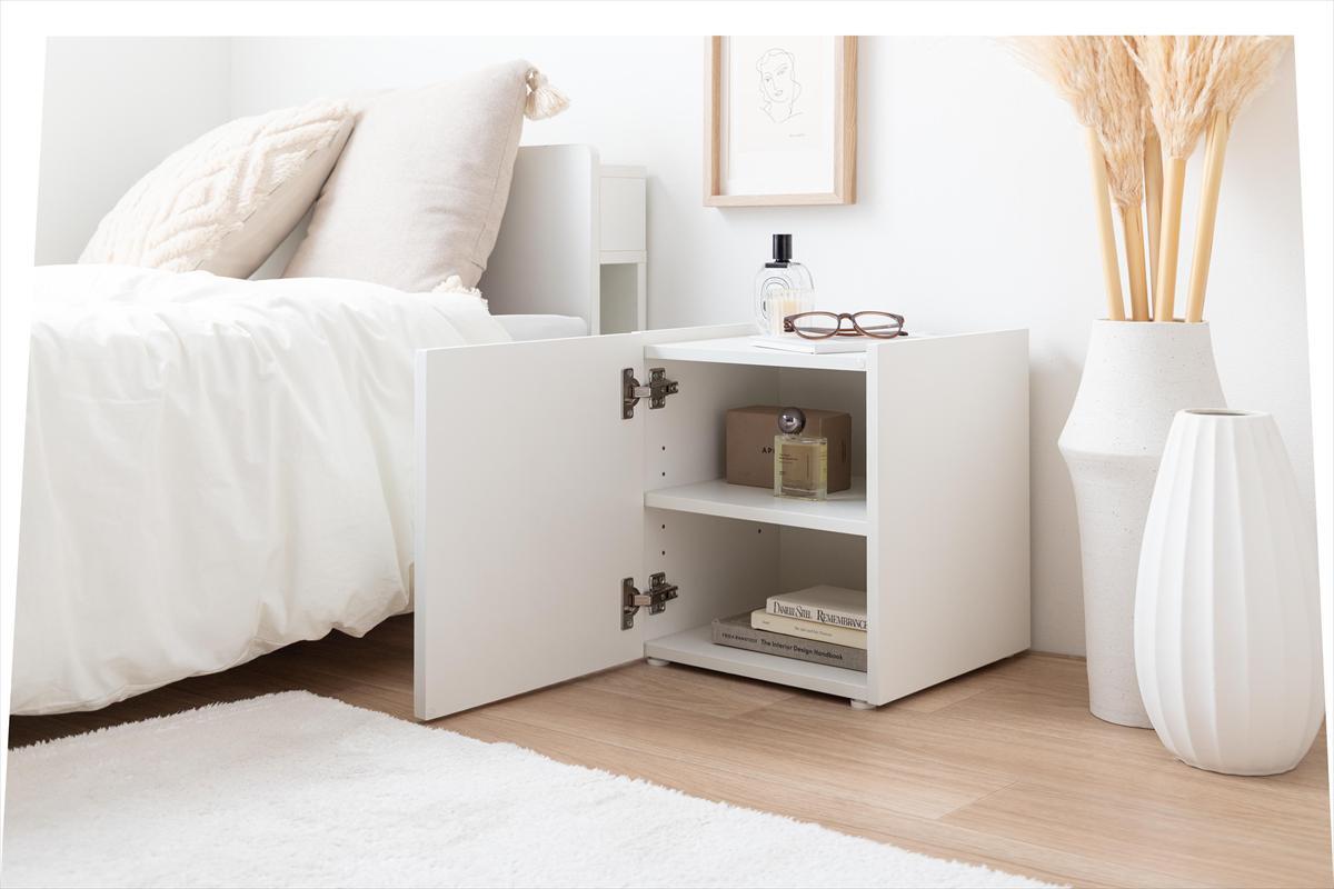 上品な波型扉が魅せるホワイトのサイドテーブル