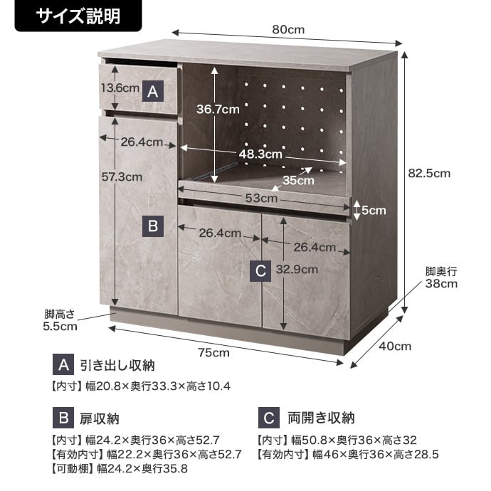 サイズ・容量 幅80cm×奥行40cm×高さ82.5cm