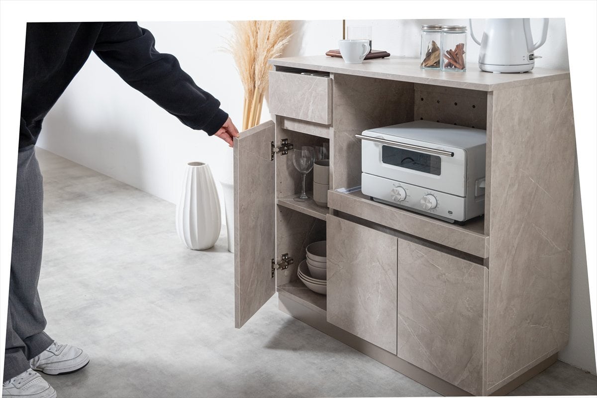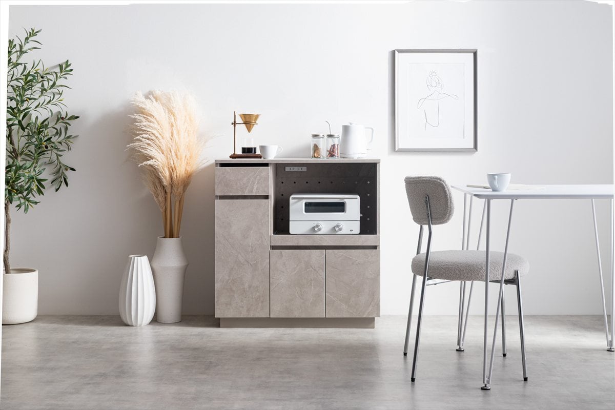 自然な風合いを感じるストーン柄が印象的な、幅80cmのレンジ台。