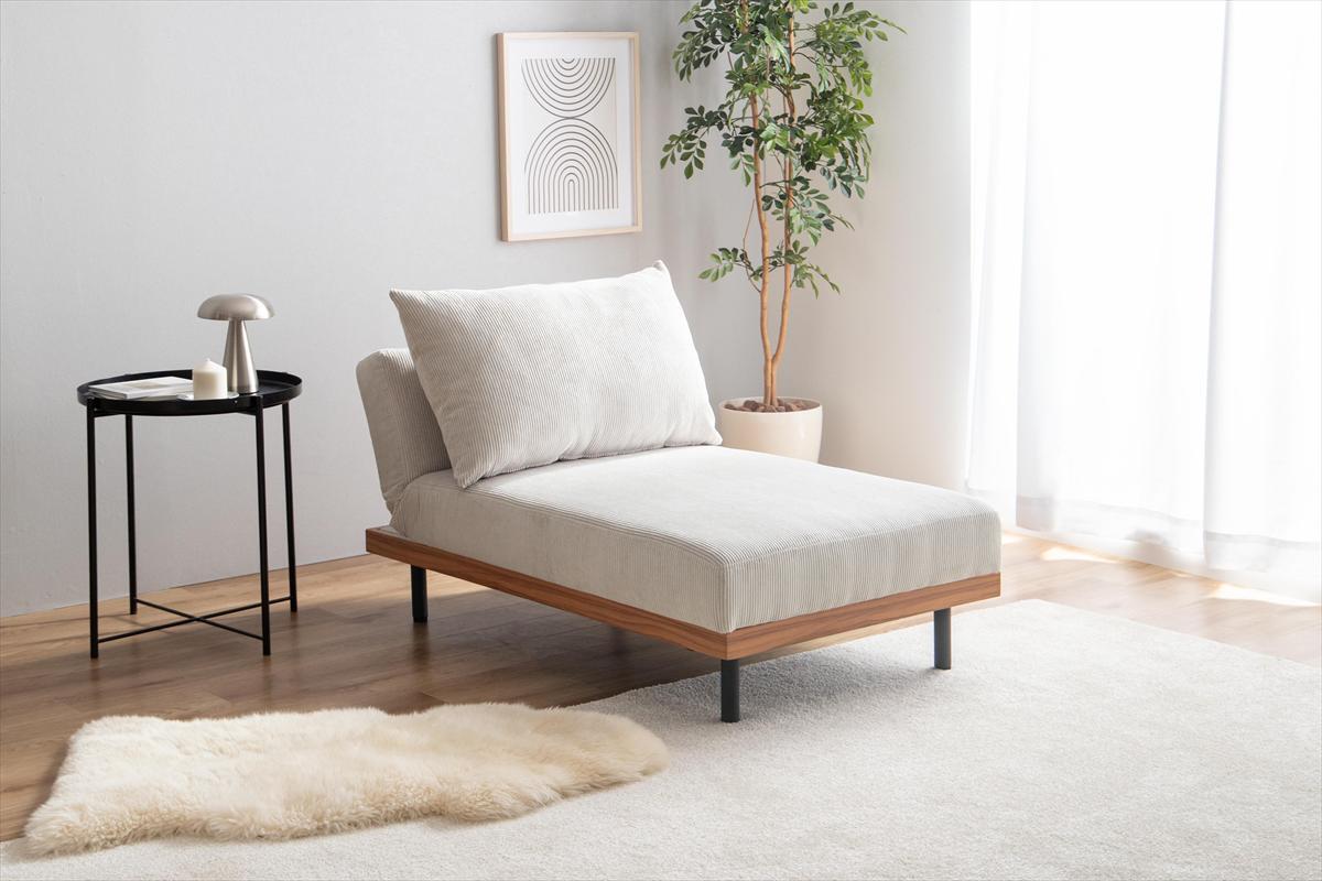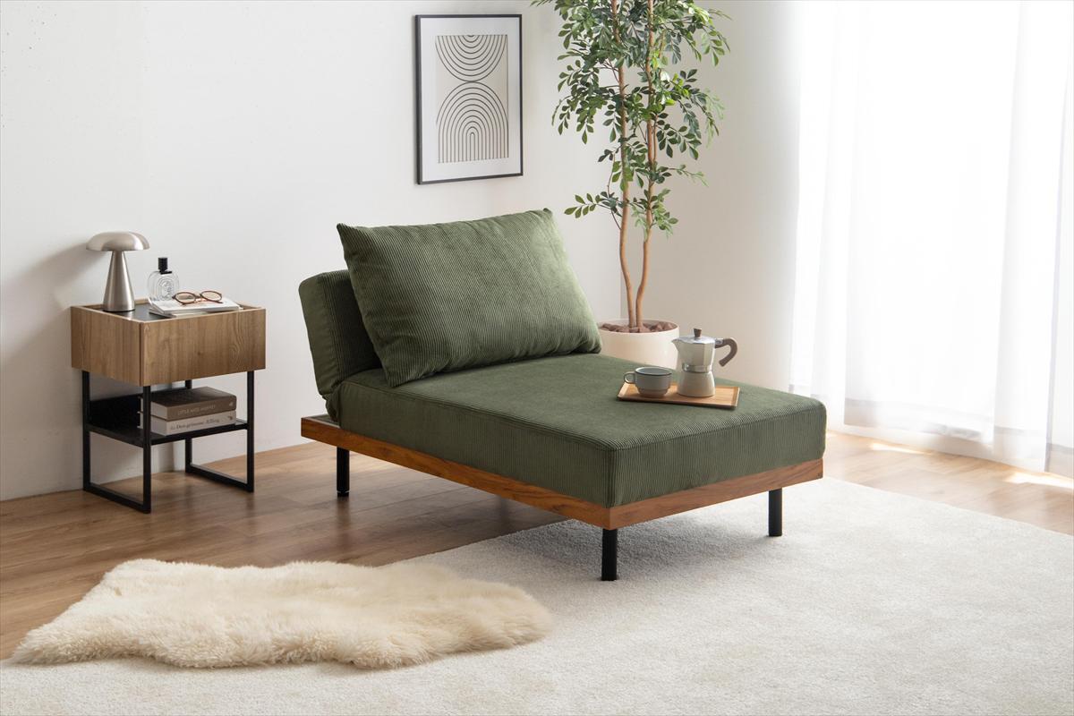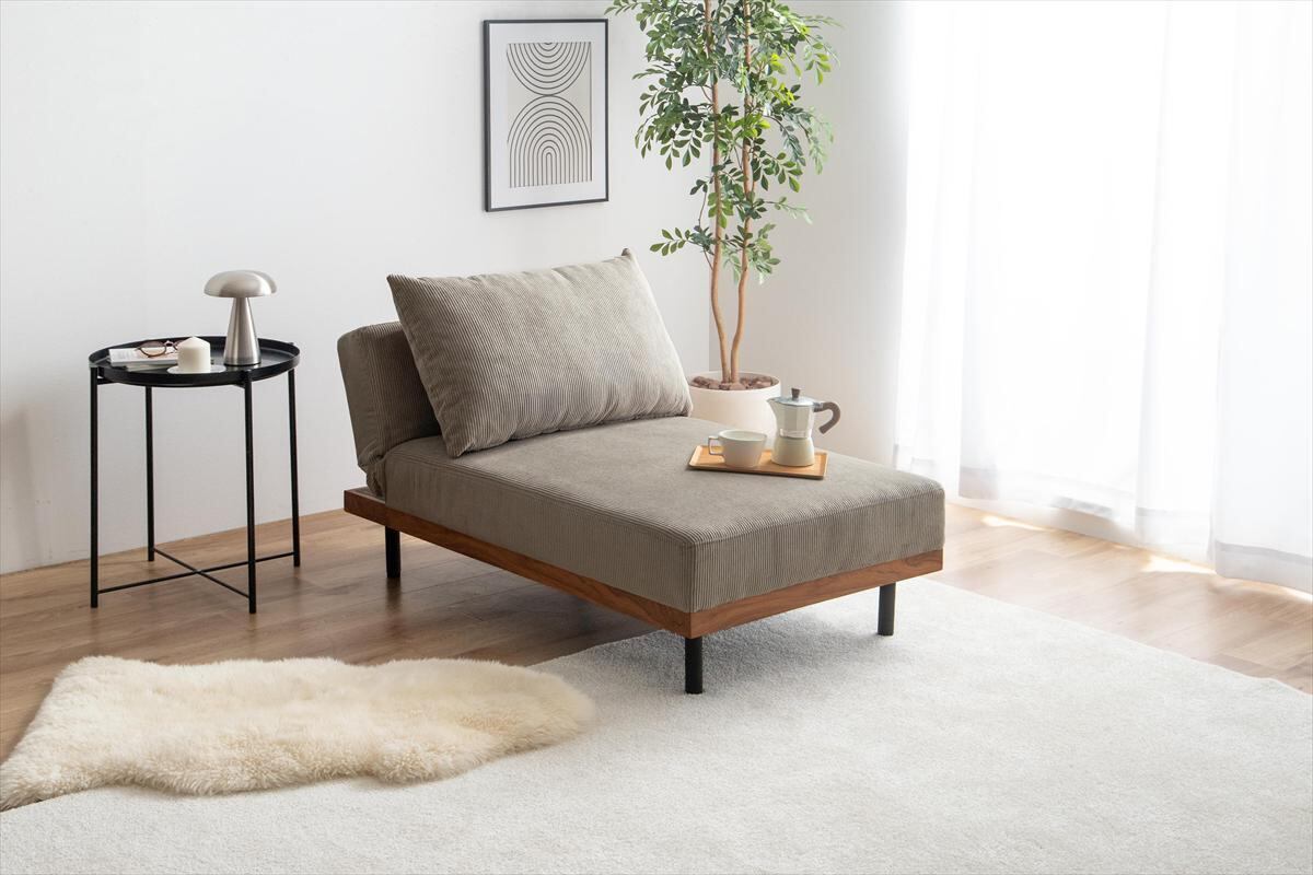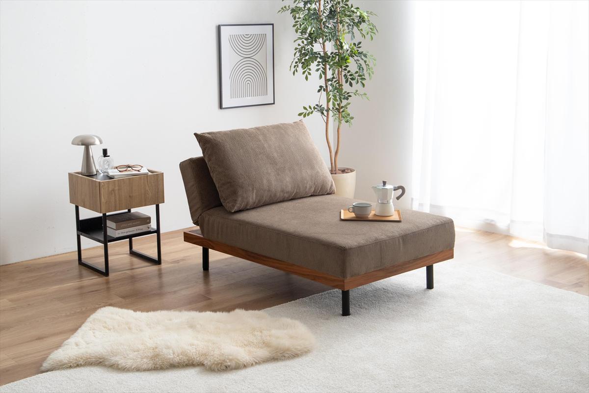 コーデュロイの温かみ×安心の木目柄×スタイリッシュなアイアンのテイストが融合した、リクライニングコーデュロイカウチソファ。