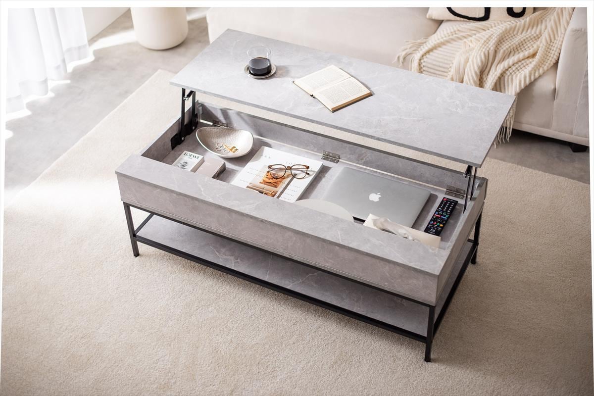 この昇降式センターテーブルは、おしゃれさと機能性を重視した設計により、日常生活をより快適にするアイテムです。