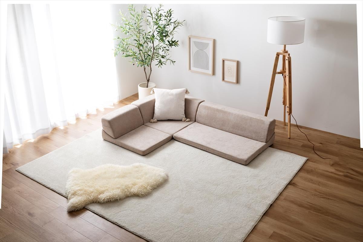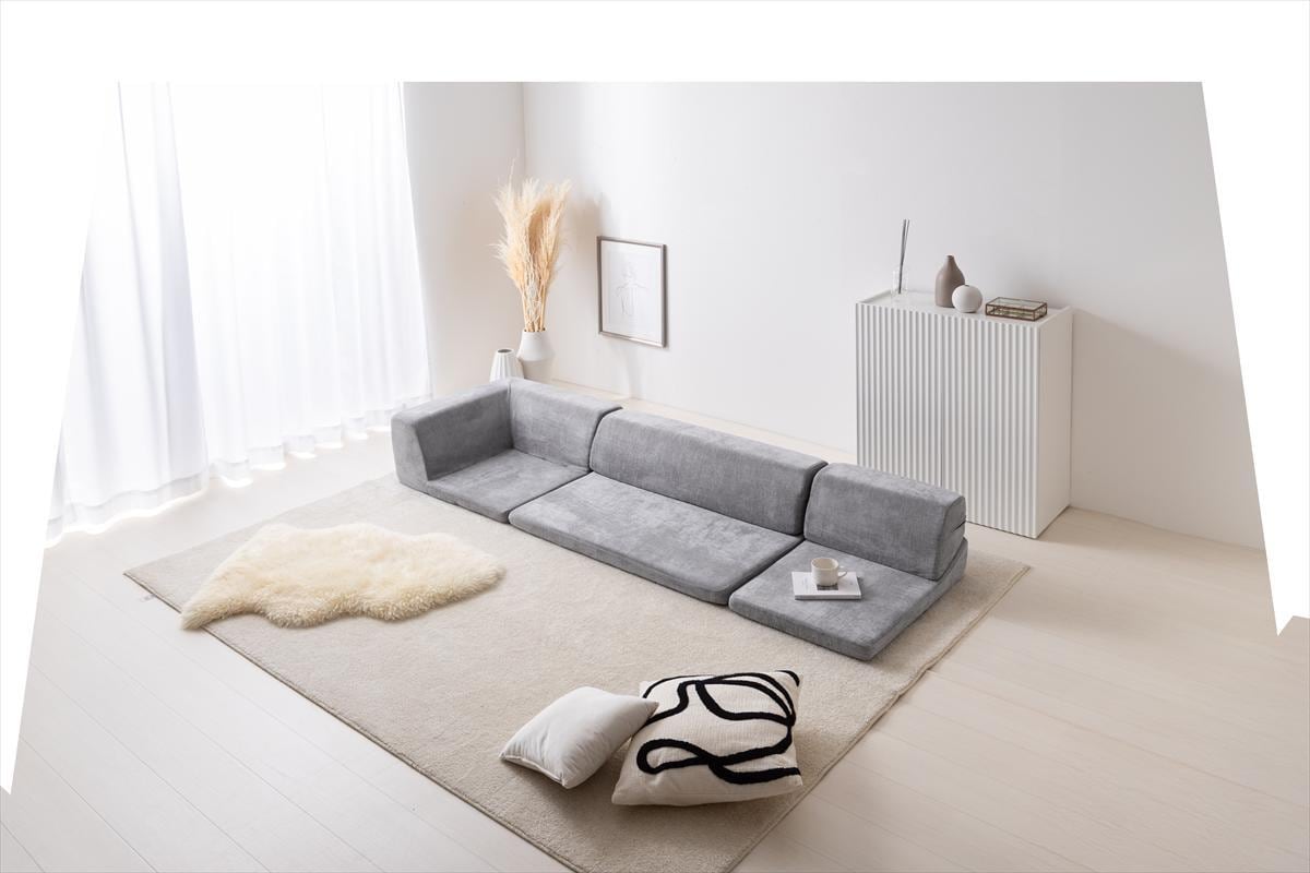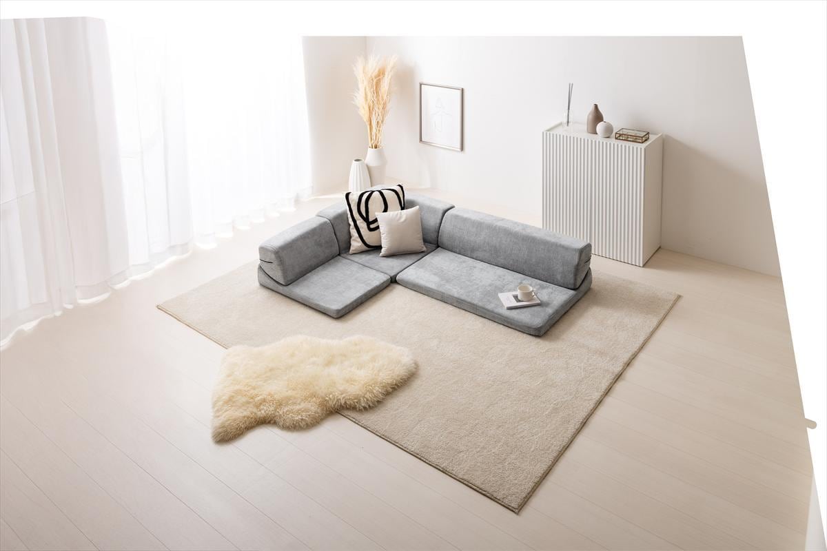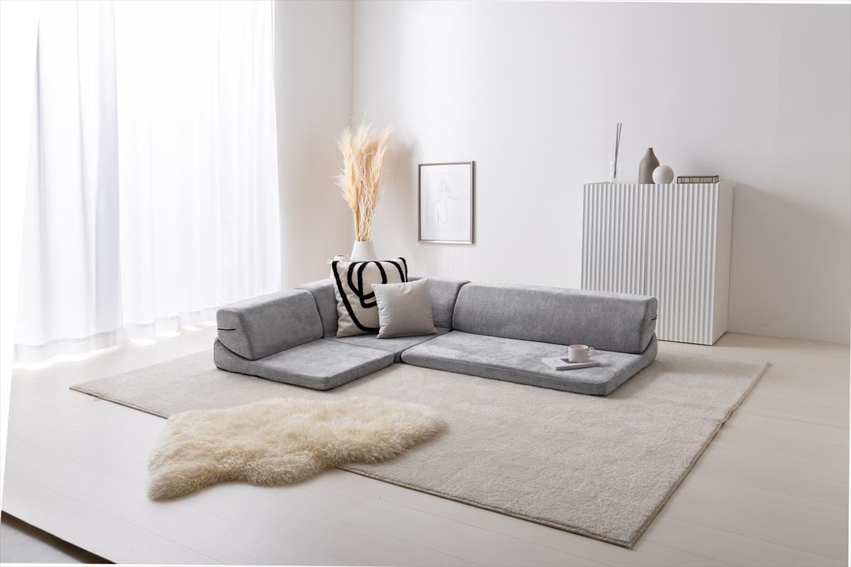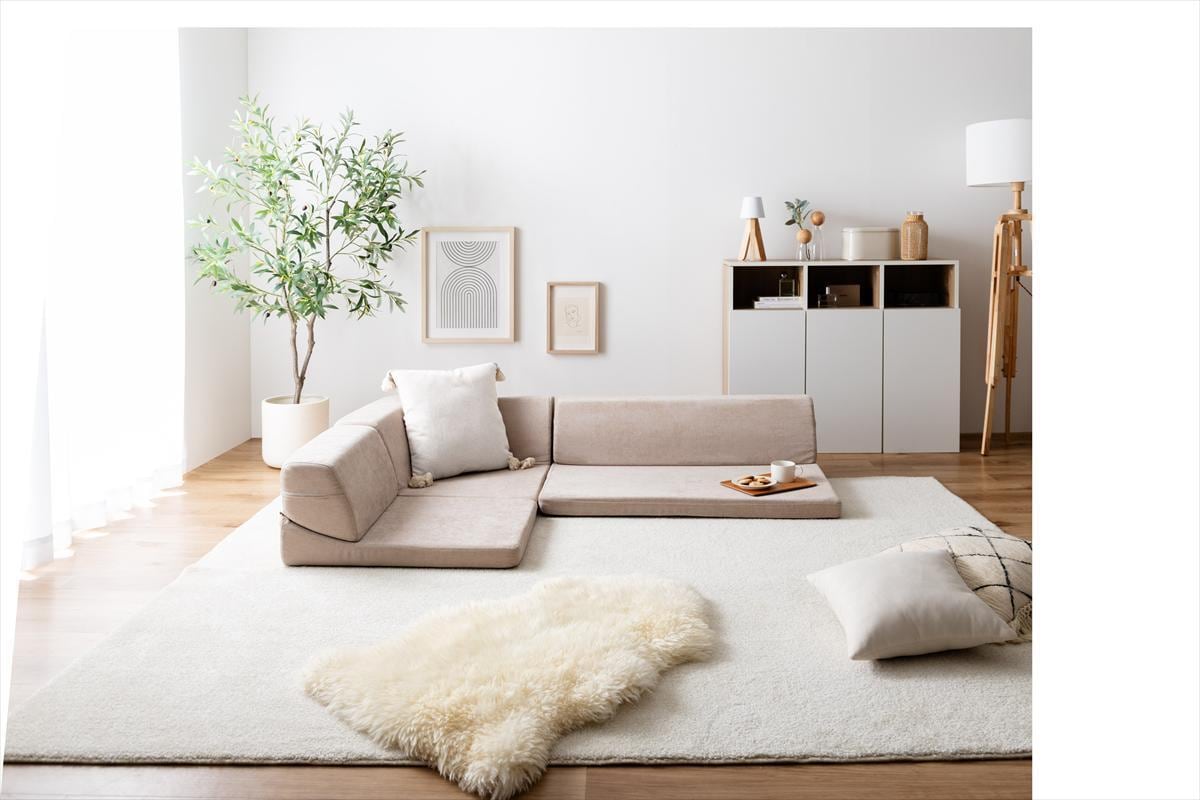 このフロアソファは、3ピース構造となっており、自分好みにレイアウトを変えることができるのが魅力です。お部屋のスタイルに合わせて簡単に模様替えが可能です。