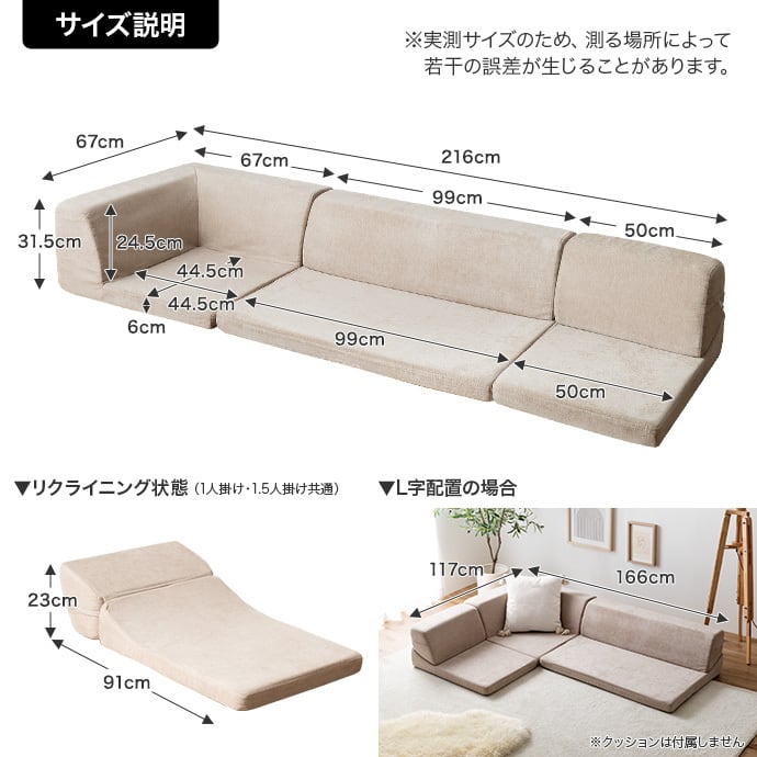 1人掛けピース:幅50cm×奥行67cm×高さ31.5cm(座面高:6cm)