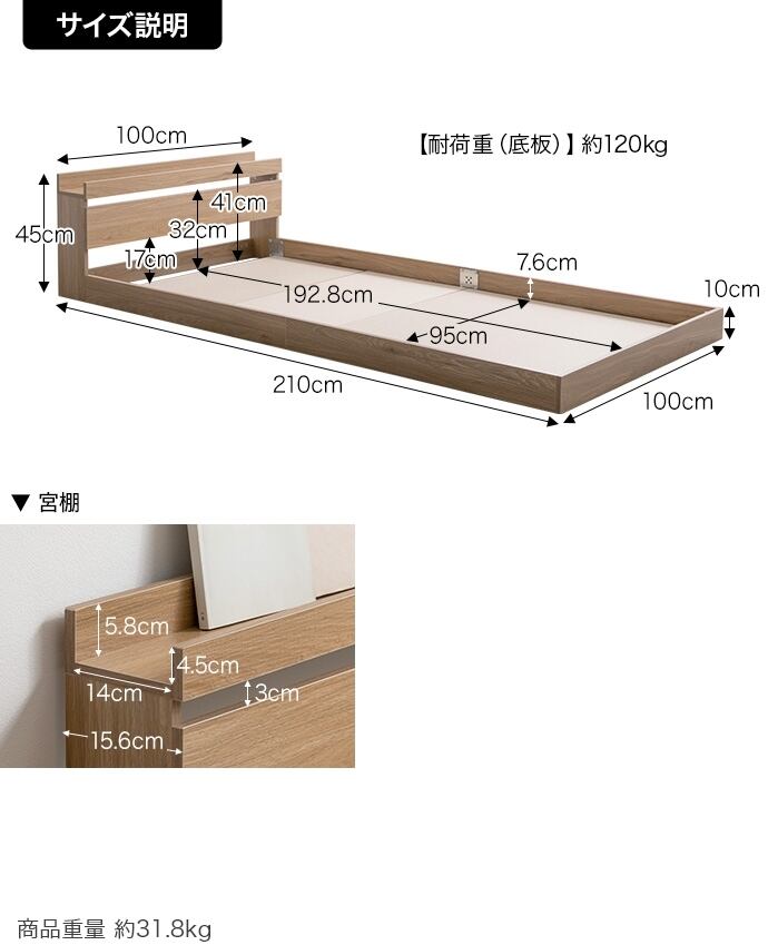 【ヘッドボード内寸】幅:100cm×奥行き:17cm×高さ:6cm