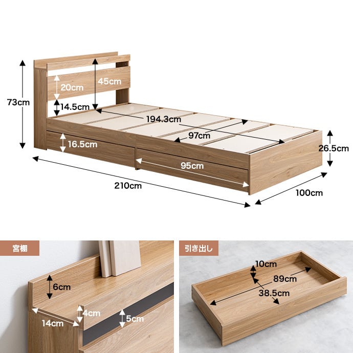 【ヘッドボード内寸】幅:100cm×奥行き:14cm×高さ:6cm