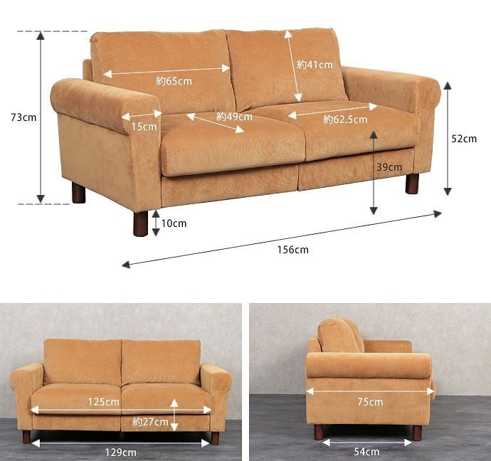 幅156cm×奥行75cm×高さ73cm(座面高:39cm)
