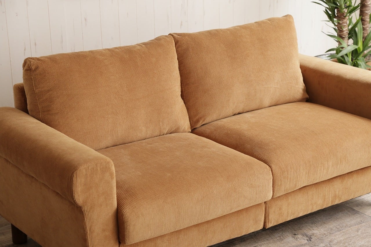 暖かみのあるコーデュロイと丸みのある肘掛けが特徴的な2人掛けソファです。フカフカのクッションで肌ざわりが良く、お部屋全体を優しい雰囲気にしてくれます。カジュアルテイストやナチュラルテイスト、北欧テイストのインテリアに合わせやすいデザインになっております。