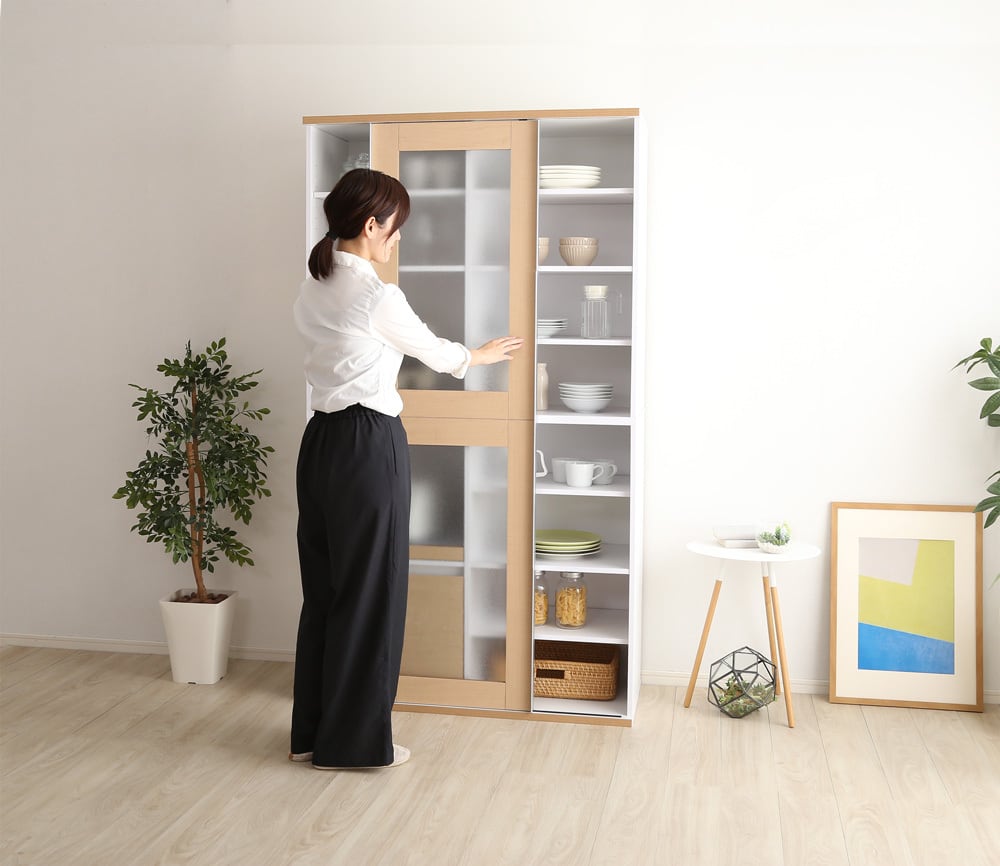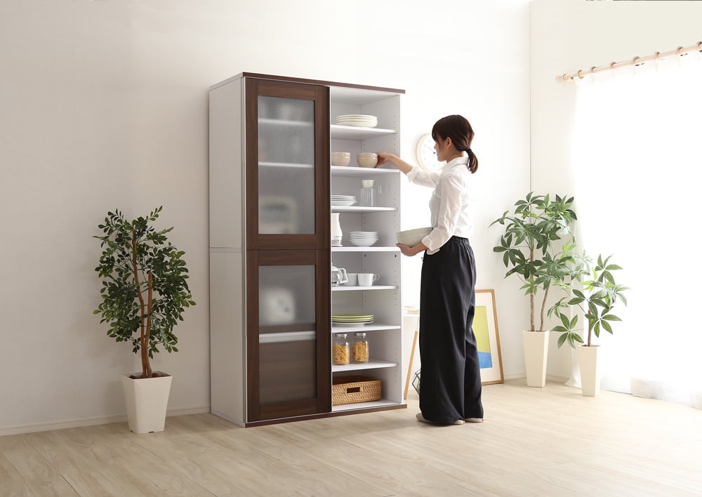 大容量収納可能!ガラス引戸食器棚