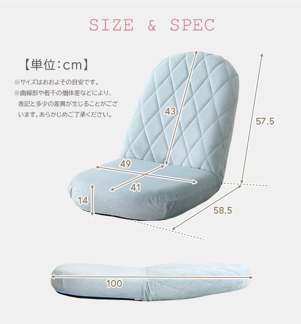 【全4色】大人かわいいダイヤモンド丸み座椅子 14段階ギアチェンジ可能