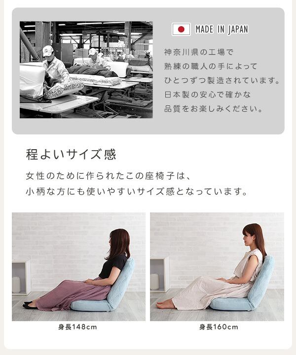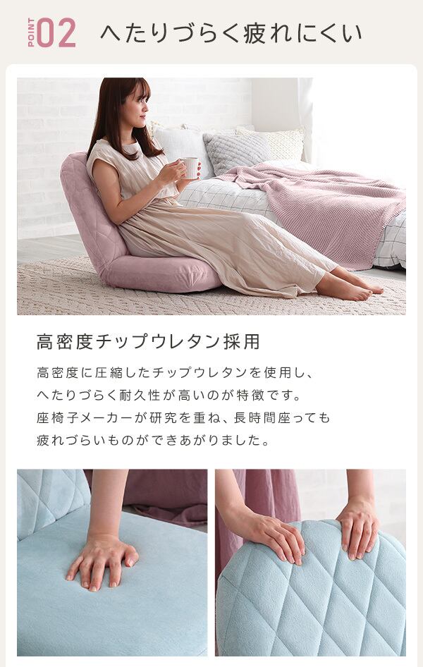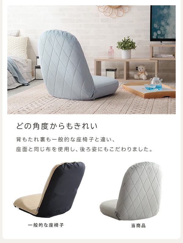 この座椅子は背面までダイヤモンドステッチが採用されているデザインが魅力です。