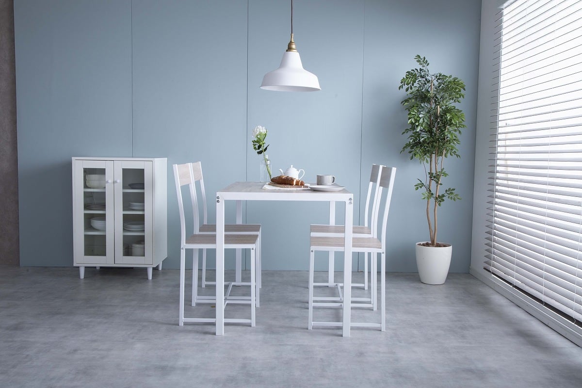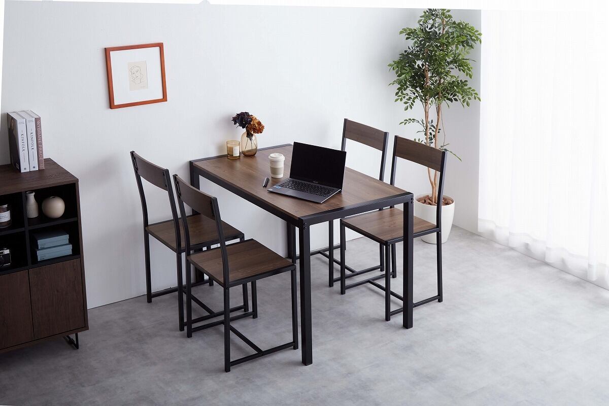 ナチュラルで美しい木目調とスチールの組み合わせがシンプルなダイニング5点セット