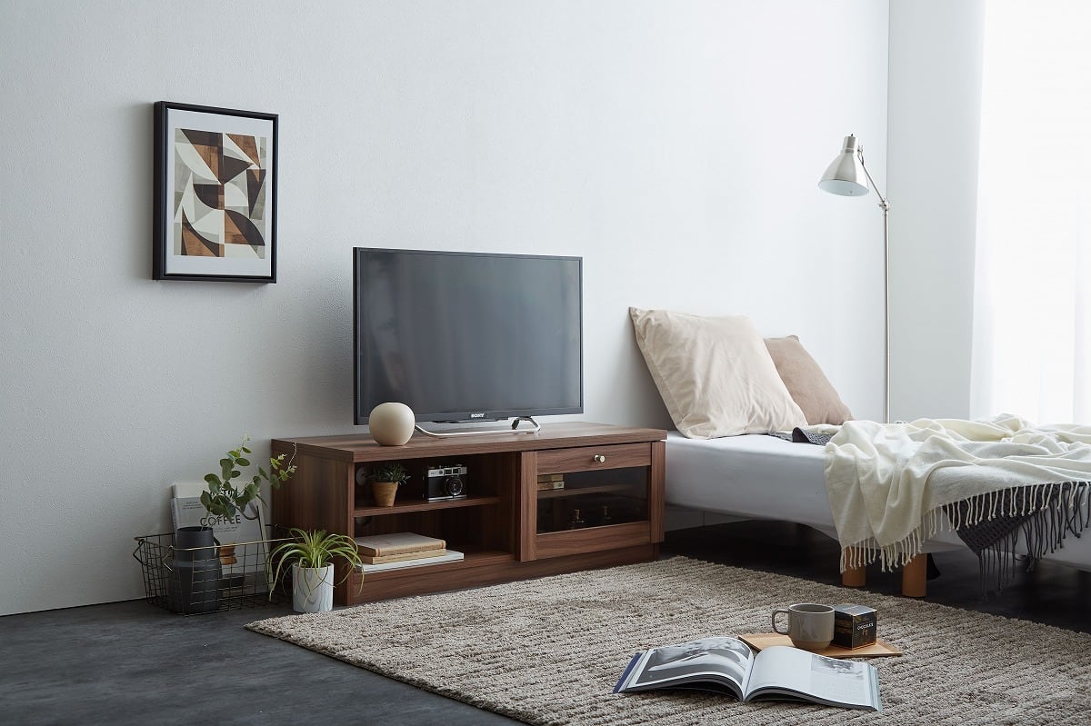 オープン収納とガラス扉収納の充実した収納スペースを備えています。コンパクトなのにしっかりとした収納力でテレビ周りで散らかりがちな小物をしまったり、お気に入りの雑貨を飾ったりして、ご利用いただけます。