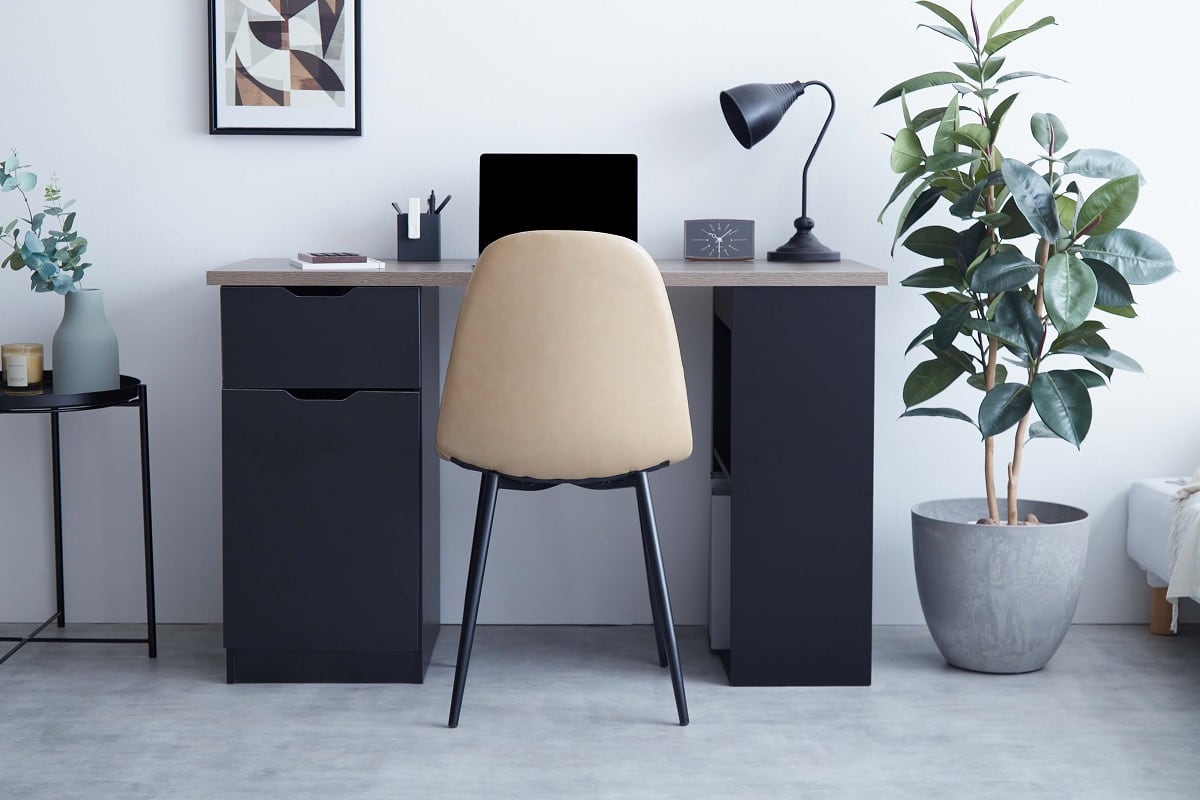 引き出し・開き扉収納・棚の3種類の収納スペースがあり、デスク周りに必要なものをスッキリまとめて収納可能です。収納スペースが豊富なので、幅120cmの天板は作業スペースとしても広くお使いいただけます。デスクにたっぷり収納できるので席を立たずとも欲しいものに手が届き、快適なワークスペースを実現することができます。