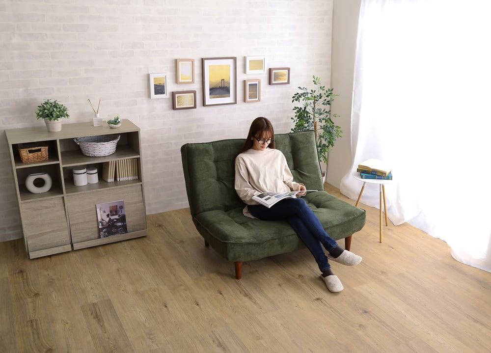 日本製ギア搭載で背もたれの角度を3段階に軽く調節できるソファです。