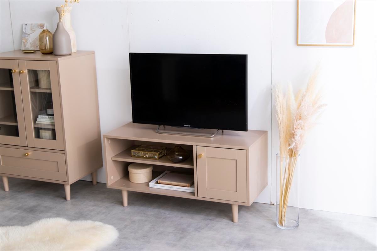 【全3色】品のある框デザイン×シャンパンゴールドの取っ手が魅力の上品テレビボード