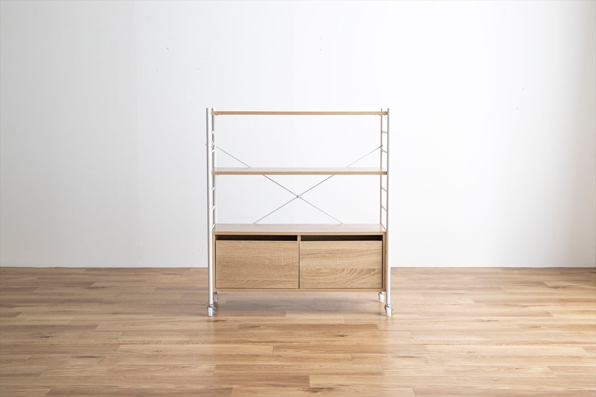 機能的で洗練された空間を作る引き出し付きシェルフ。圧迫感の無い抜け感のあるデザインがお部屋に馴染みやすく、インテリアをおしゃれに引き立てます。コンパクトながらも収納力抜群で、一人暮らしやワンルームにもピッタリです。
