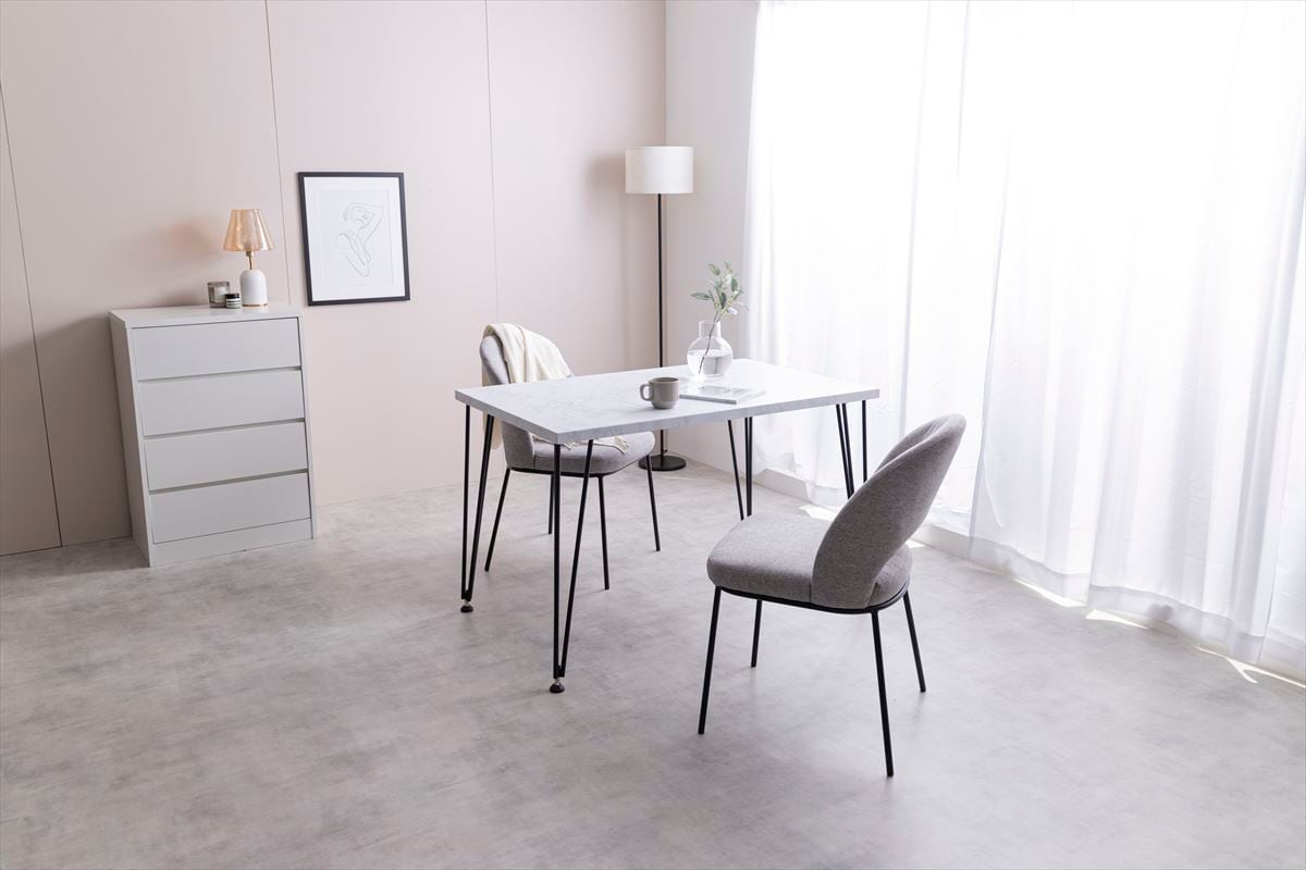 食事シーンに上質で居心地のいい時間を与えてくれるダイニングテーブル。美しい大理石天板がワンランク上のゆったりした空間を演出します。また、コンパクトなサイズで、省スペースで置くことが可能です。さらに、天板はPVC加工、脚部には粉体塗装を施しているのでお手入れも簡単です。