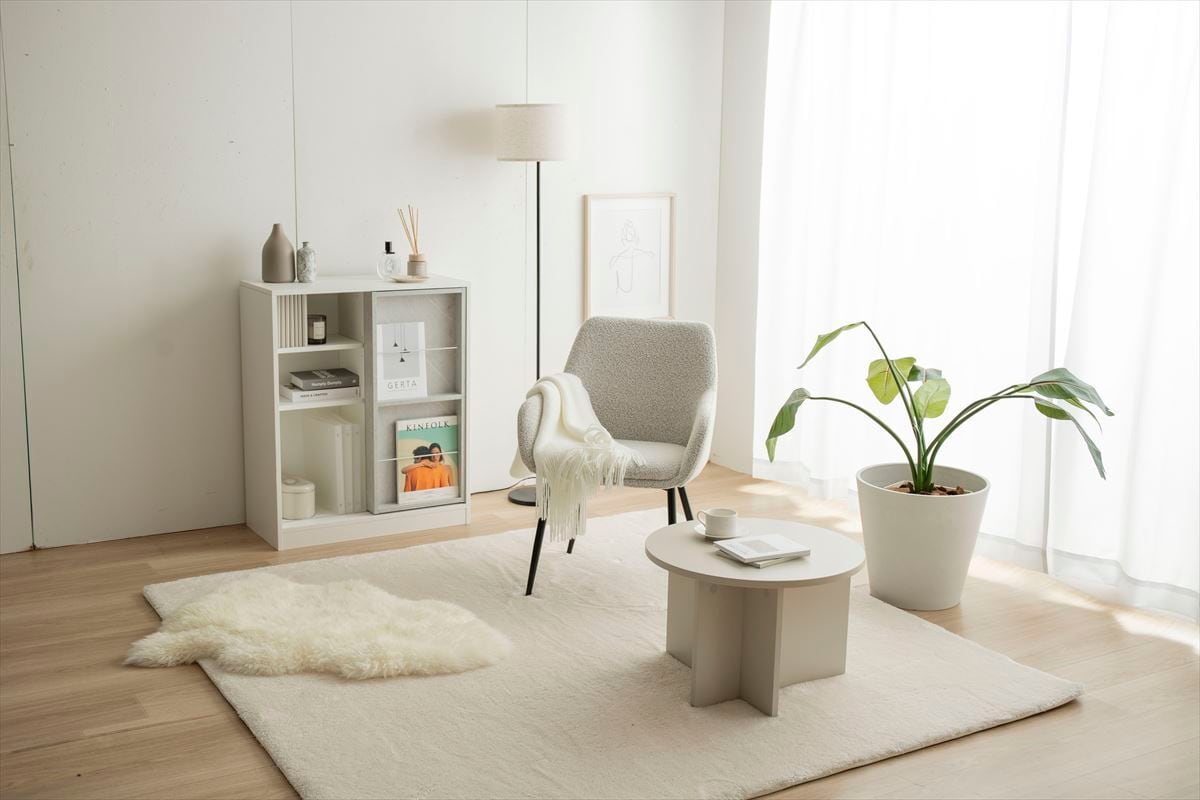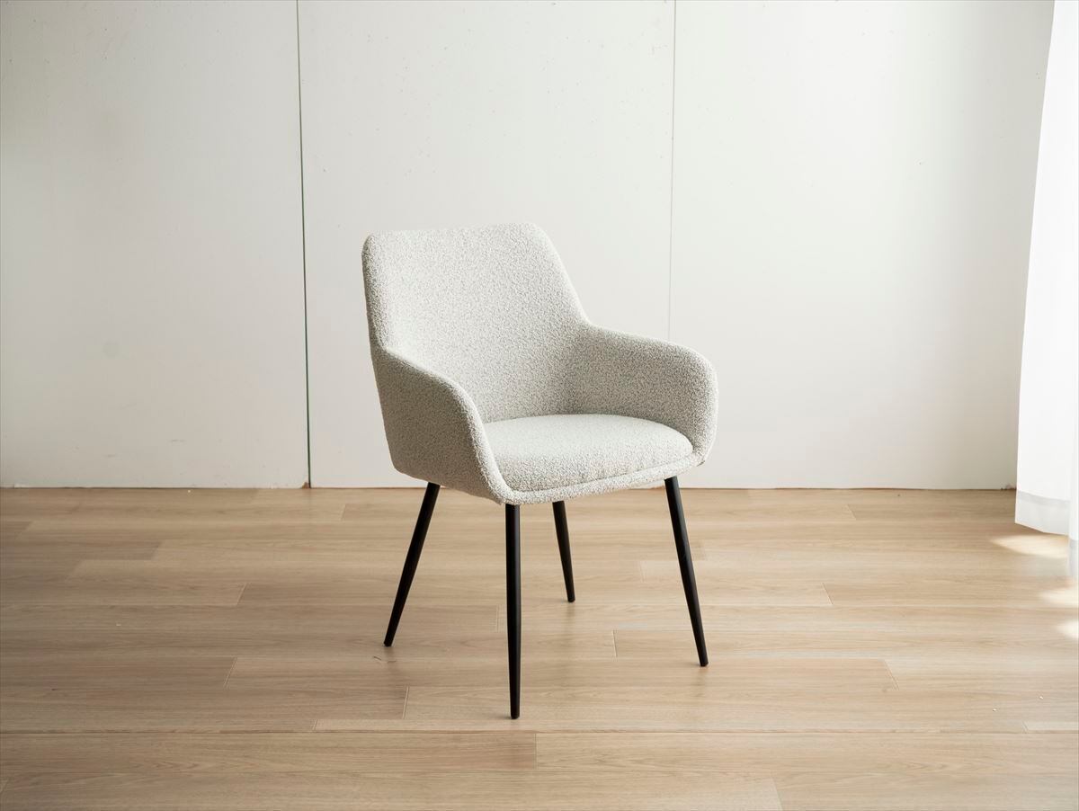 高級感漂うブークレ素材が特徴のアームチェア。丸みを帯びたフォルム×アイアン脚の組み合わせは、海外インテリアのような落ち着いた空間を演出。また座り心地にもこだわり、長く座っても疲れ にくいチェアに仕上げました。ダイニングやデスクなど幅広いシーンで活躍します。