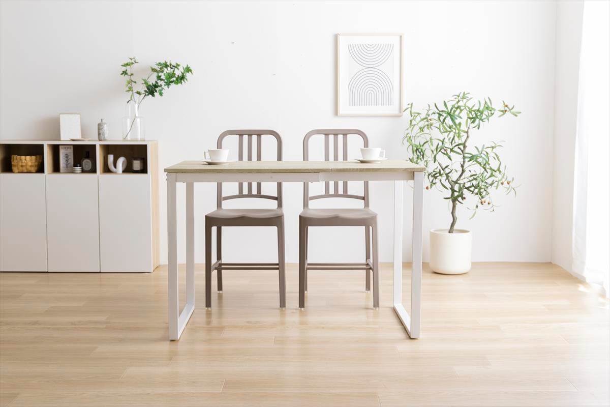 シーンに合わせて天板を伸縮できる伸縮式ダイニング テーブル。お部屋を広く使いたい時はコンパクトに、来客時やゆったりと食事をしたい時にはワイドに広げるなど、好きな時に天板サイズを調整できます。また、コンパクトなサイズで、省スペースで置くことが可能です。