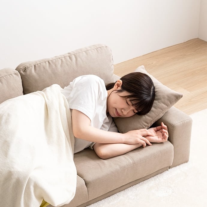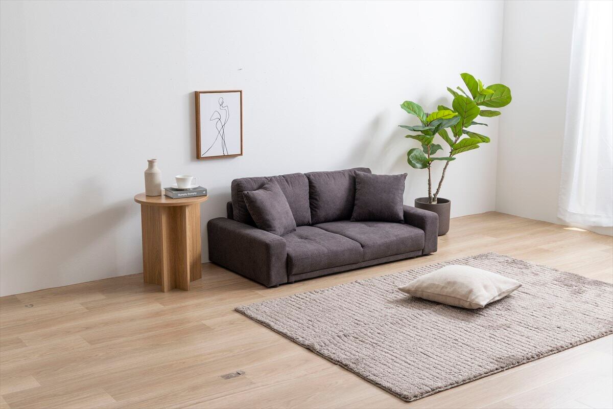 座面高はローソファの中でも低めの19cm。足を伸ばしてくつろぐことができるので、一段とリラックスしたひとときに。また、高い位置からの落下が心配なお子さまやペットがいるご家庭でも安心してお使いいただけます。
