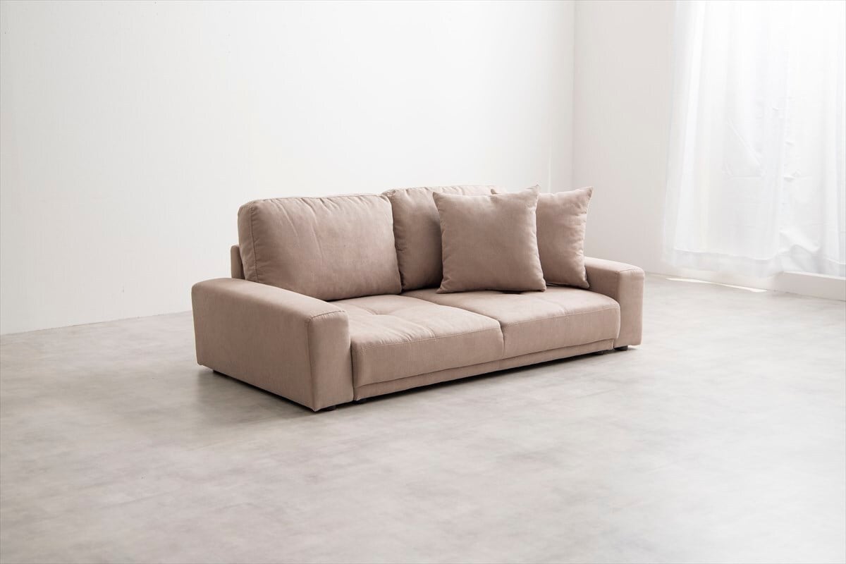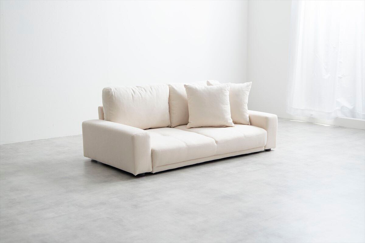 座面奥行は46cmと深く腰掛けられるゆったりとしたサイズ感。また、座面は底付き感のない程よい弾力性で、長時間座っても快適に。寝ころんでも心地良く感じる柔らかいクッション性で、身体を包み込み、うたた寝を誘います。
