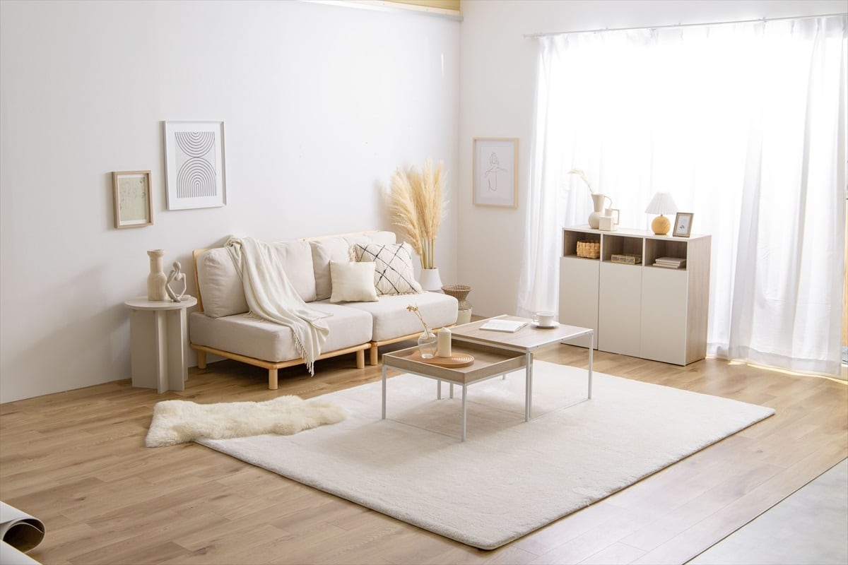 テーブルの高さは約40.5cmと、一般的なソファに合わせて使いやすい設計です。センターテーブルとしてもサイドテーブルとしても快適にお使いいただけます。※テーブル(小)は高さ35.5cm