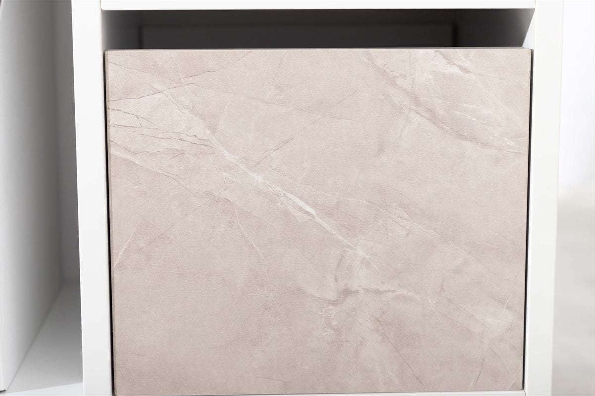 背面側にくるりと回すだけで、収納物が見えなくなり、まるでオブジェのようなサイドテーブルに。