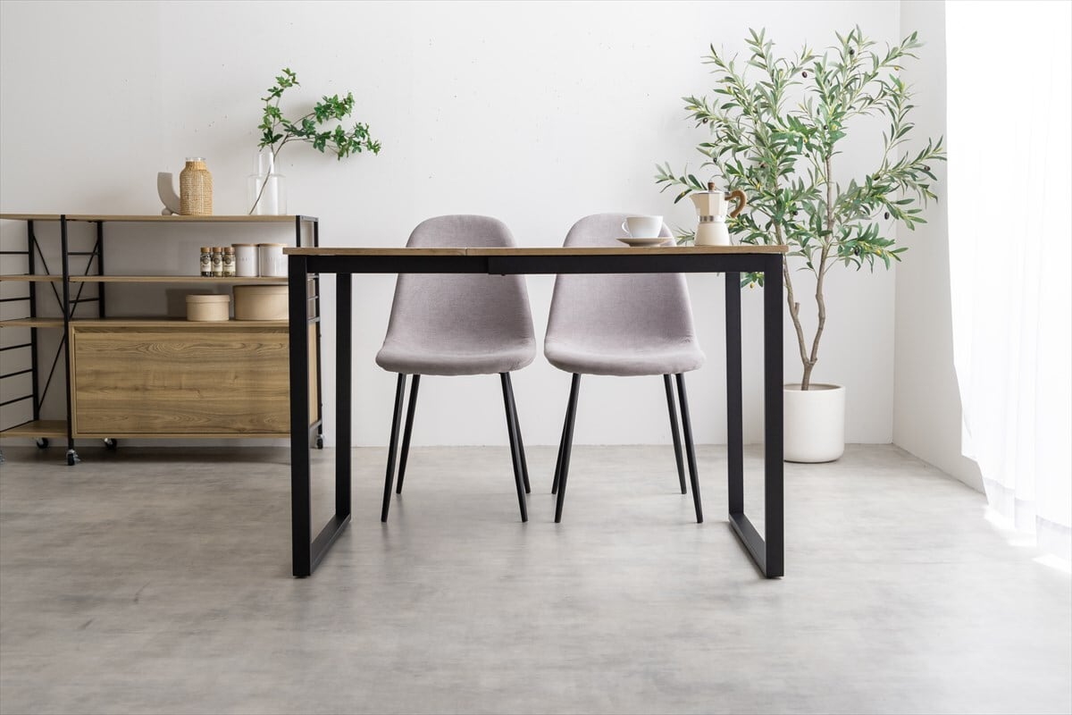 木目の温もりとスチール脚が美しく調和し、ナチュラルテイストやナチュラルヴィンテージのお部屋とも相性抜群。また、美しい大理石調天板とブラックスチール脚はモダンやホテルライクなテイストと相性がよく、洗練されたこなれ感のある空間を演出します。