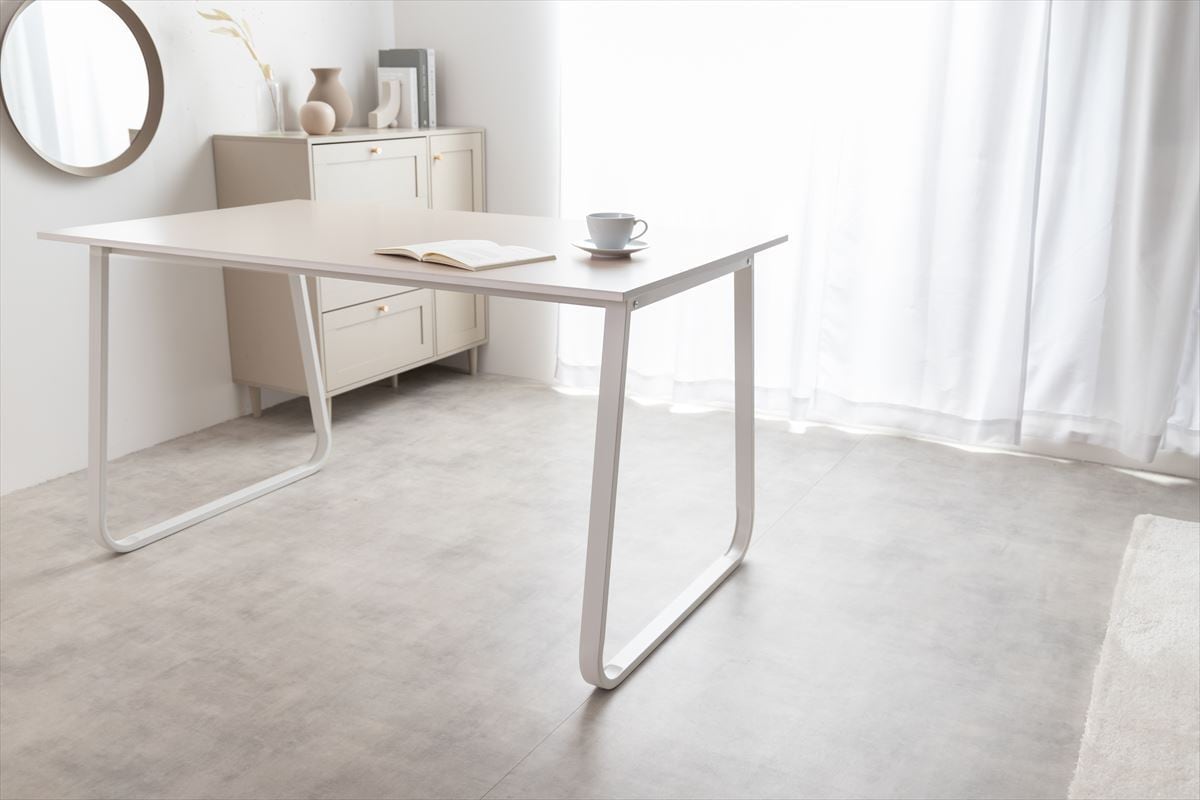 落ち着きあるカラーの天板とベル型の形状をした脚部を組み合わせたダイ ニングテーブル。独特なフォルムは置くだけで洗練さを演出します。また天板は広く、お手入れもしやすいので、長く快適にお使いいただけます。料理が映える天板で、特別かつ快適な食事時間をお過ごしください。