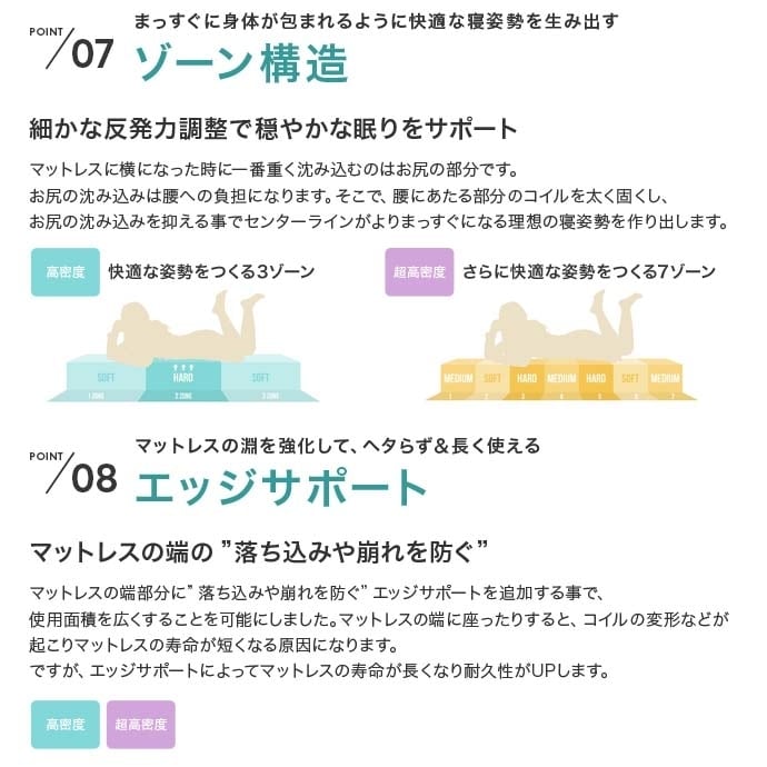 [超高密度ハイグレードポケットコイルマットレス(シングル)]