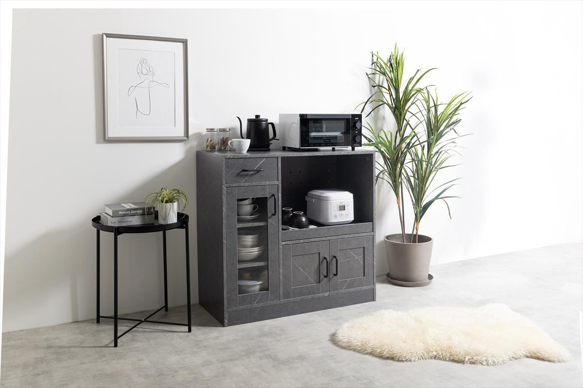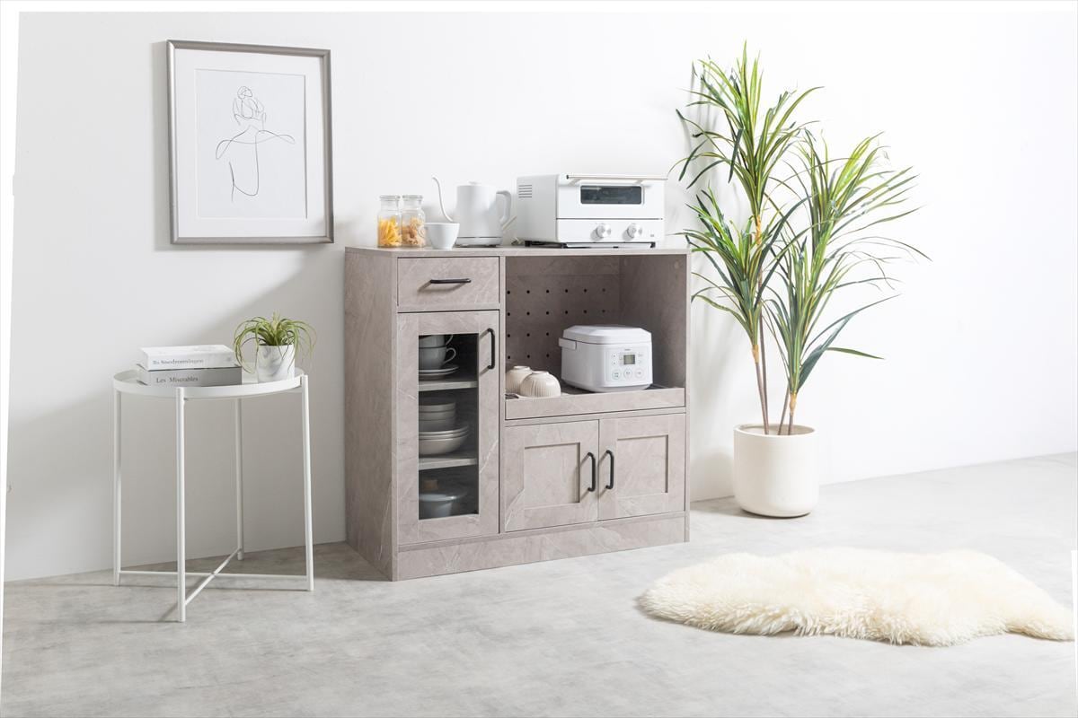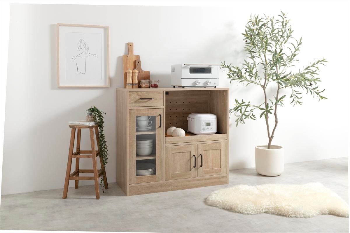 キッチン家電や食器・小物などをたっぷり収納できるレンジ。