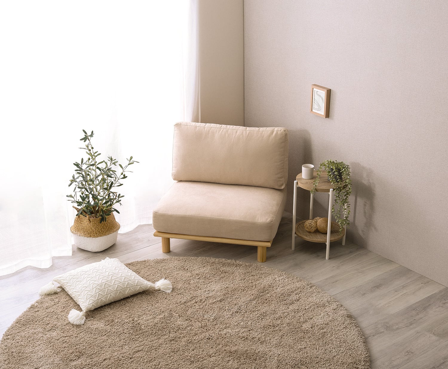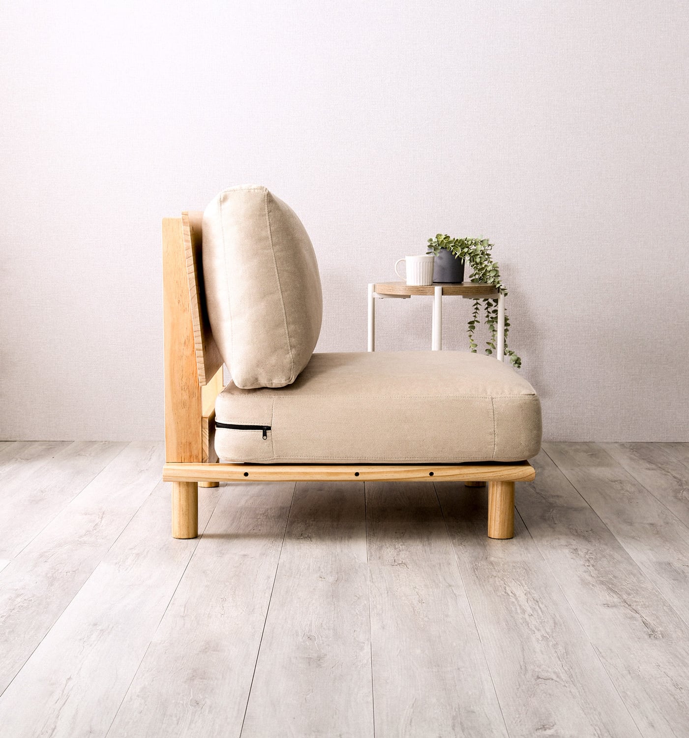 天然木とファブリックの調和で暖かみのあるファブリックローソファです!